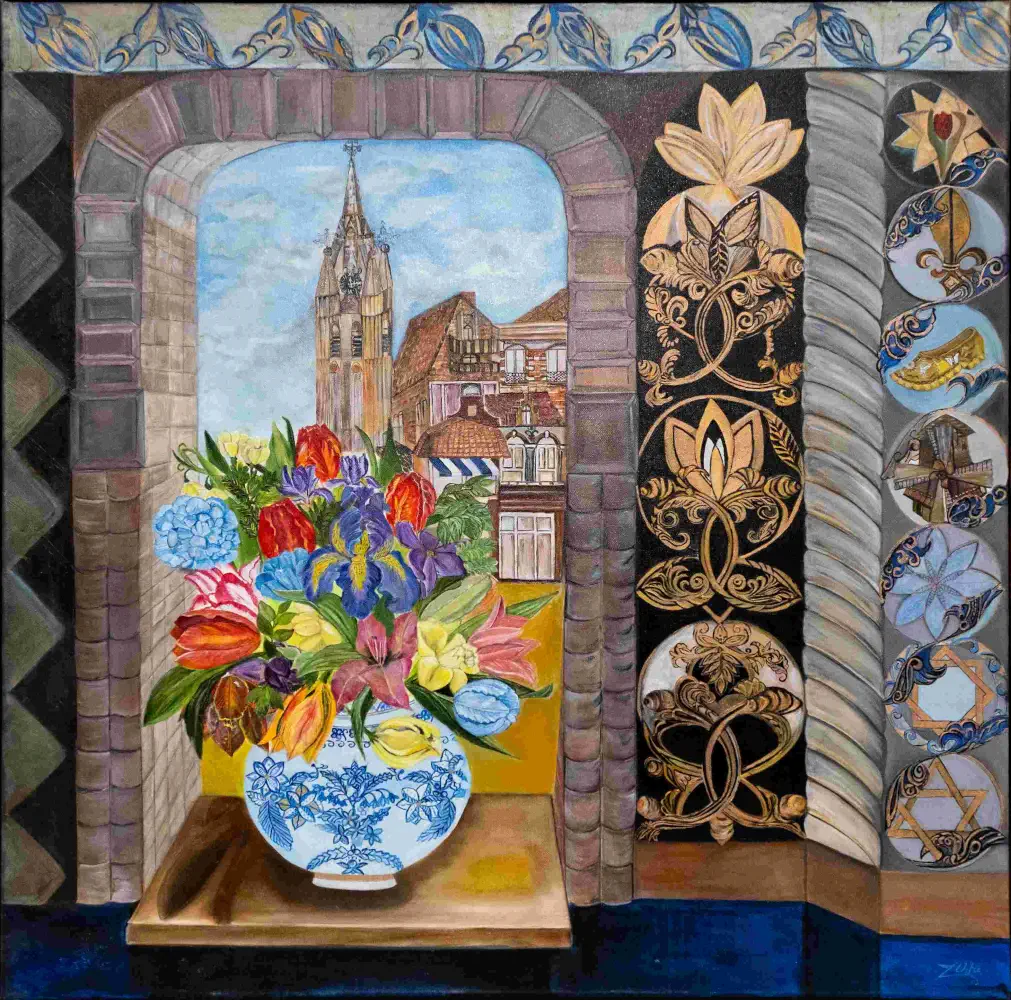 Her work reflects a deep appreciation for experimentation, mixing different styles and techniques using materials such as oil and acrylic. Inspired by the beauty of Dutch flowers and the timeless charm of Delft paintings, her latest works combine traditional elements with contemporary touches.